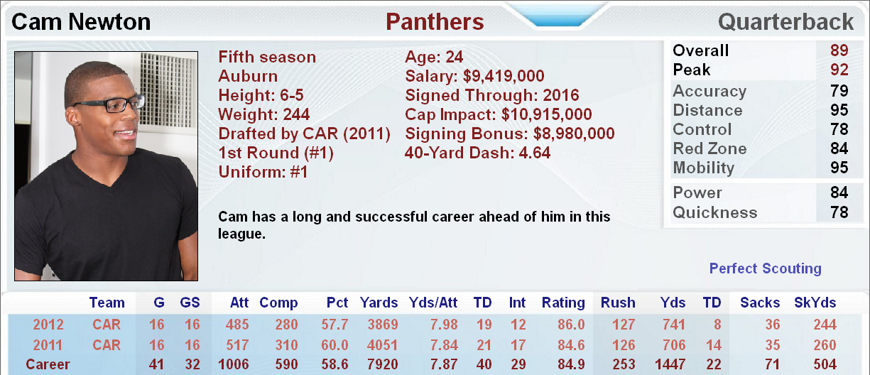 This is the Scouting Report for Cam Newton: