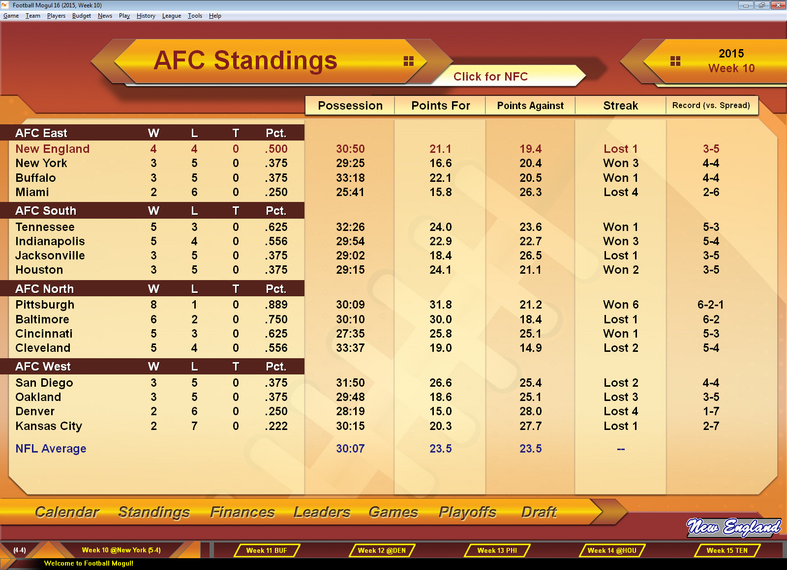 We've also added two options to the Calendar Page: Point Spread and Over-Under, to give you a better idea of your odds before each game (and to let you know if you covered the spread).