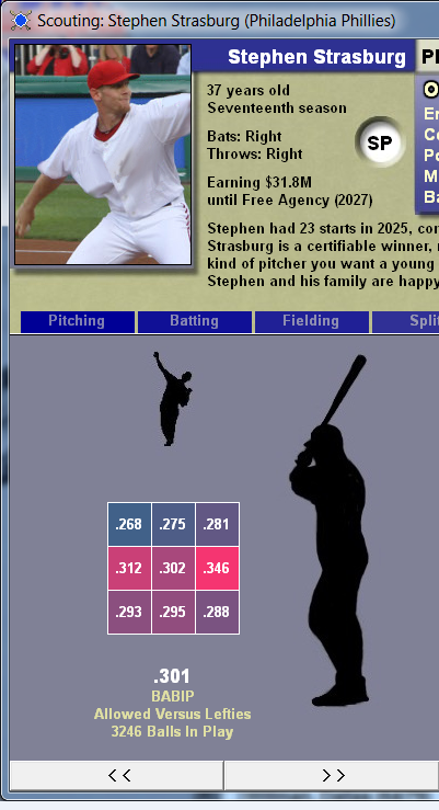 The above chart was created by simulating from the 2012 season through 2025. It shows BABIP (Batting Average On Balls In Play) for all lefties that Strasborg faced.